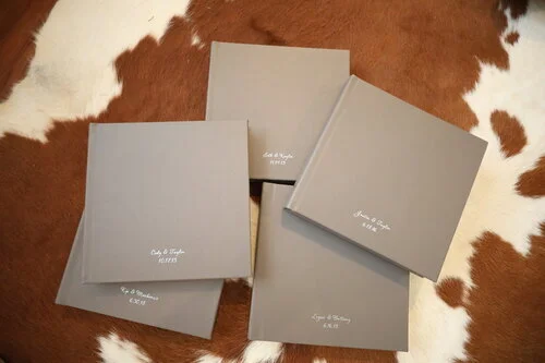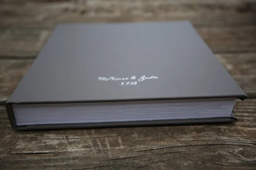 What does the process look like to get one of these? Good question! I’m so glad you asked! My couples will ‘favorite’ 100 images in their online gallery + those are the images I will use to design the layout of the album. After the layout is designed, I email a proof over to the couple to check. Once I have their approval, the album is ordered! My couples choose how their name + date is displayed on the front of the album as well.