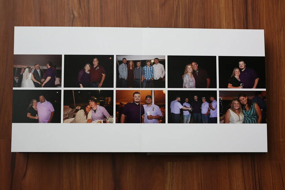 The best + easiest way to keep all of your fav wedding photos in one place to share with all of your fam is in an heirloom album. These albums are 10x10 leather-bound with thick board pages. They are printed by a professional print lab that isn’t open to consumers + of the HIGHEST quality.